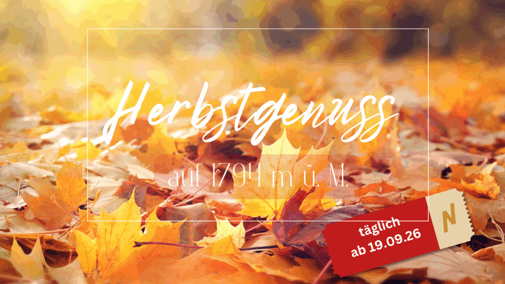 Auf der Berghausterrasse bekocht Sie unser Küchenteam ab Samstag 19. September 2026 täglich bis Saisonende, Sonntag 18. Oktober 2026, mit feinen Herbstmenüs. Keine Tischreservation erforderlich (ausser Gruppen ab 10 Personen).