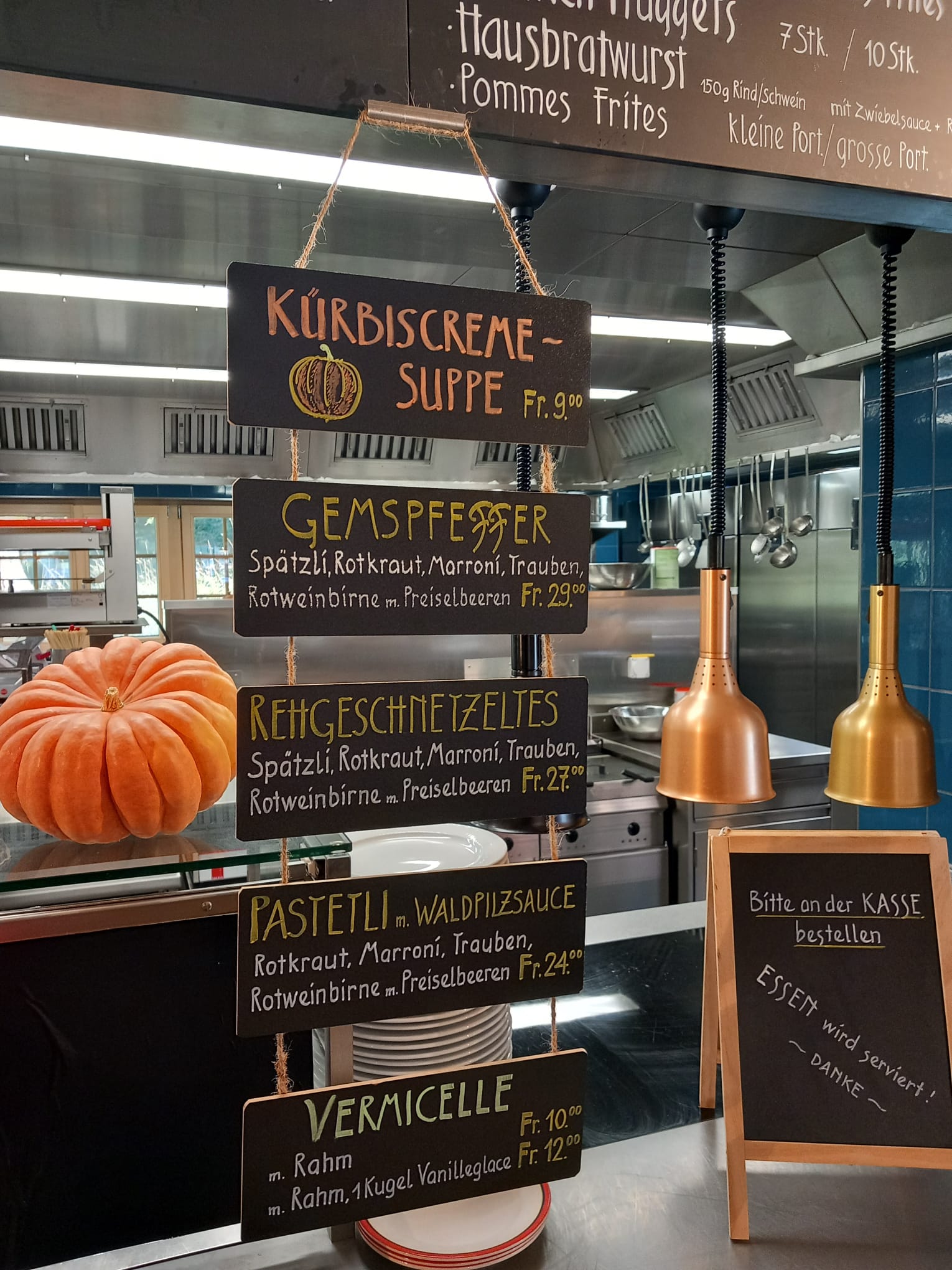 Warme Küche: 11 bis 15 Uhr (Abendessen sind auf Anfrage möglich)