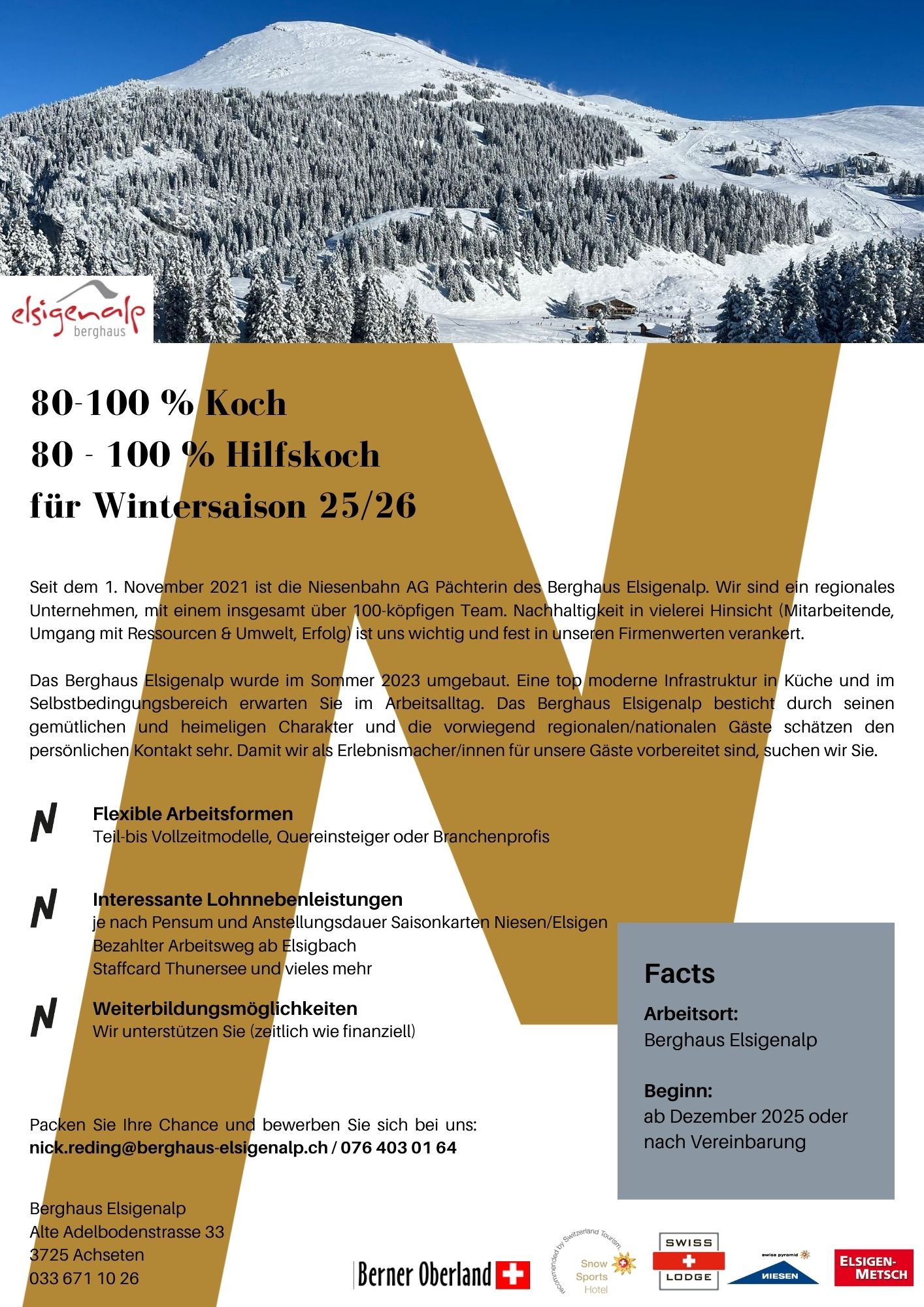 Werden Sie Teil vom Berghaus-Elsigenalp-Team